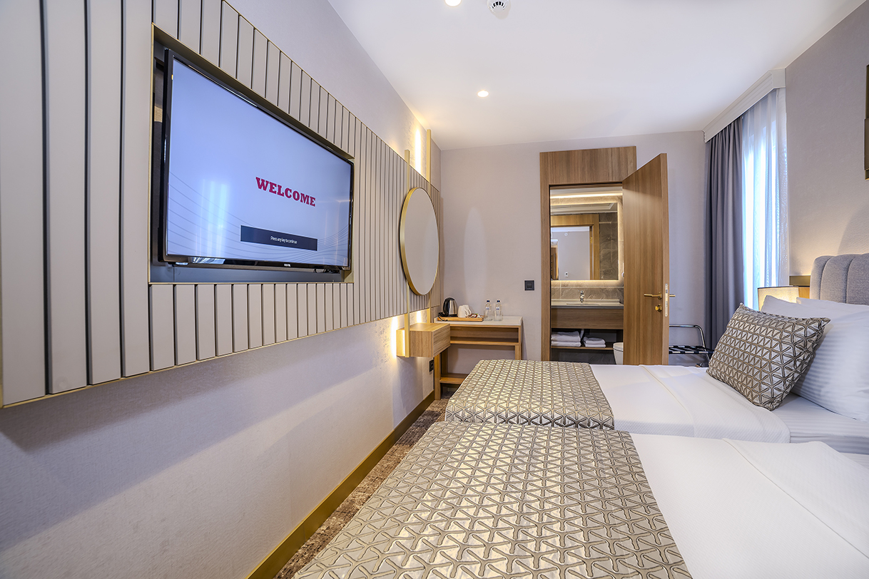 A Brand New Comfort Experience in the Historic Peninsula: Lions Royal Hotel Located on Istanbul's historic peninsula, where culture and modern comfort meet, Lions Royal Hotel opens its doors on August 1st. Welcoming guests with 63 elegantly designed rooms, our hotel blends the spirit of the Historic Peninsula with modern touches. Built to withstand earthquakes and fully comply with fire regulations, your safety and comfort are always our top priority. Whether you're staying for business or pleasure, Lions Royal Hotel is designed to offer you an unforgettable experience.